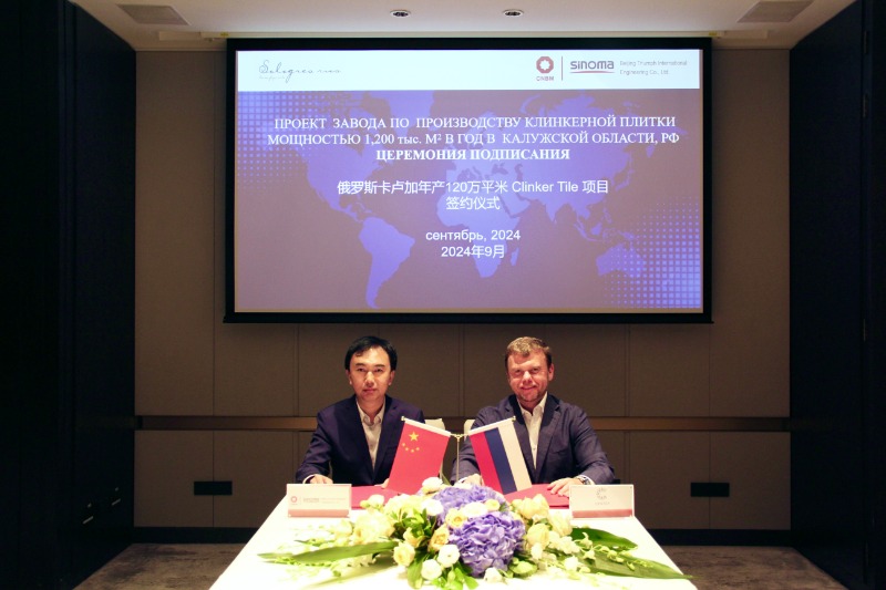 金秋送爽,喜迎華誕。9月27日,北京凱盛建材工程有限公司與俄羅斯Tochka Center集團簽訂俄羅斯年產(chǎn)120萬(wàn)平米陶板項目EPS總承包合同和6000TPD熟料水泥項目EPC框架協(xié)議。北京凱盛黨總支書(shū)記、董事長(cháng)李明與Tochka Center集團董事長(cháng)Vladislav Melnikov代表雙方簽約。