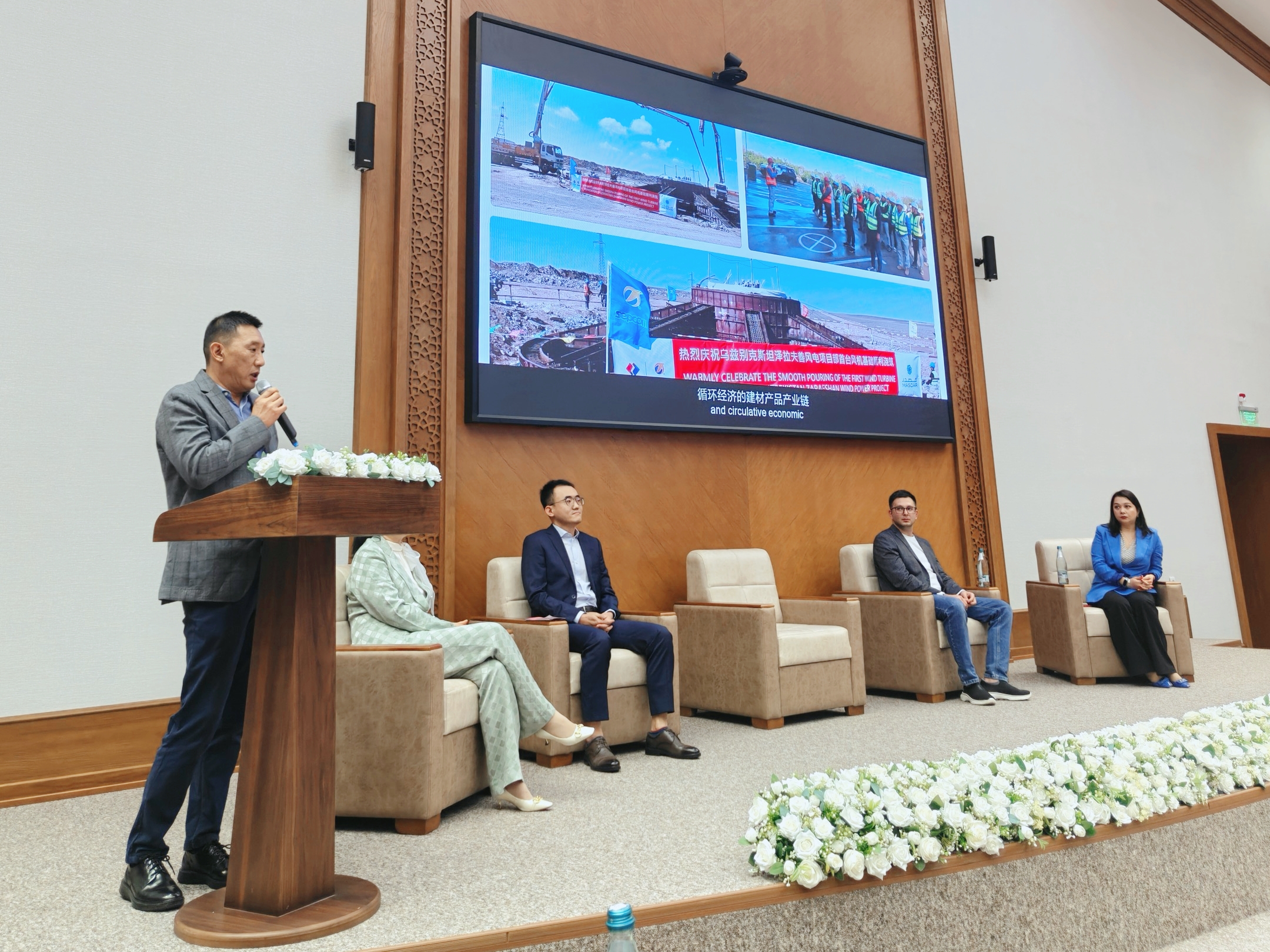 活動(dòng)現場(chǎng),北京凱盛烏茲別克斯坦綠色建材有限公司副經(jīng)理劉敬民代表公司講話(huà),詳細介紹了北京凱盛深耕烏茲別克斯坦市場(chǎng)的發(fā)展歷程與人才需求。他指出,北京凱盛在中國建材集團“海外再造”戰略與中材國際“1236”戰略的指引下,持續擴大在烏水泥工程EPC+市場(chǎng)份額,同步開(kāi)展化學(xué)建材、商混供應等多種屬地化建材產(chǎn)品的生產(chǎn)經(jīng)營(yíng)。他強調,隨著(zhù)北京凱盛在烏業(yè)務(wù)的蓬勃發(fā)展,公司亟需更多熟悉中烏文化、精通建材領(lǐng)域的優(yōu)秀人才加入,共同推動(dòng)當地綠色建材產(chǎn)業(yè)升級。