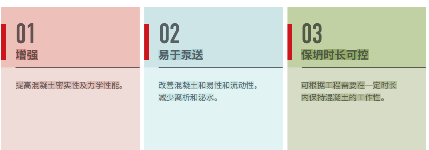 GBM-100(標準型)具有減水功能和增強效果,可改善混凝土泵送性能,對混凝土凝結時(shí)間無(wú)明顯影響。