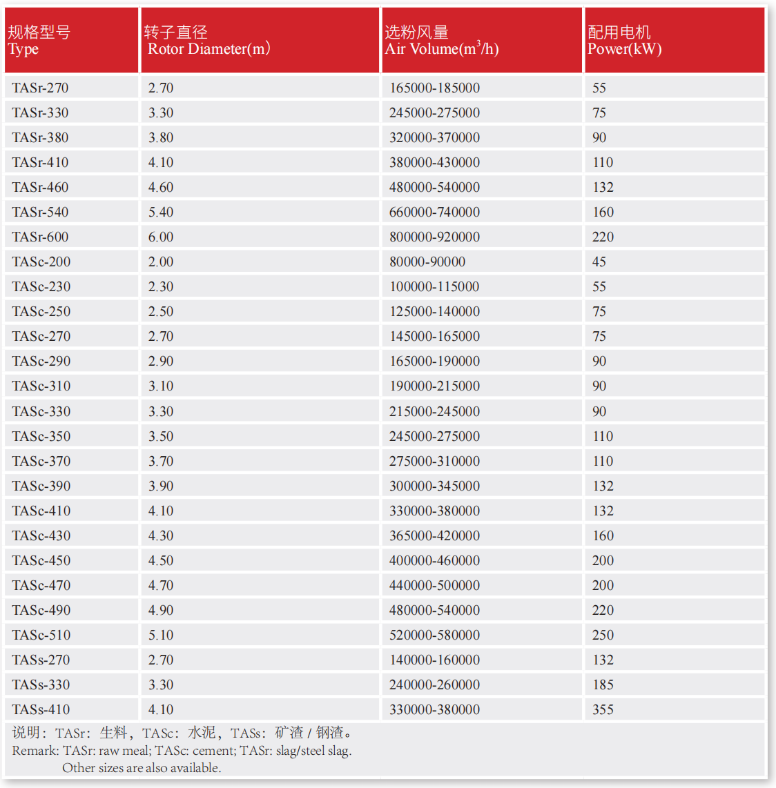 ●組合式密封、后傾轉子葉片、可調導流葉片,調節更靈活、選粉效率高;